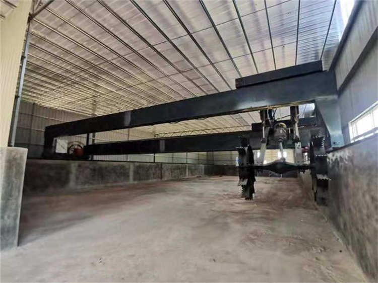 翻抛工作中,空载返回翻抛位置移动到另一发酵罐时,可操作液压升降系统将其提升至合适的高度,完成主机的操作和更换..